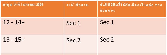 ช่วงอายุที่สมัครสอบของแต่ละชั้นปี (ข้อมูลจากเวบไซต์ของ MOE)