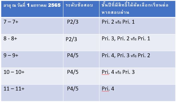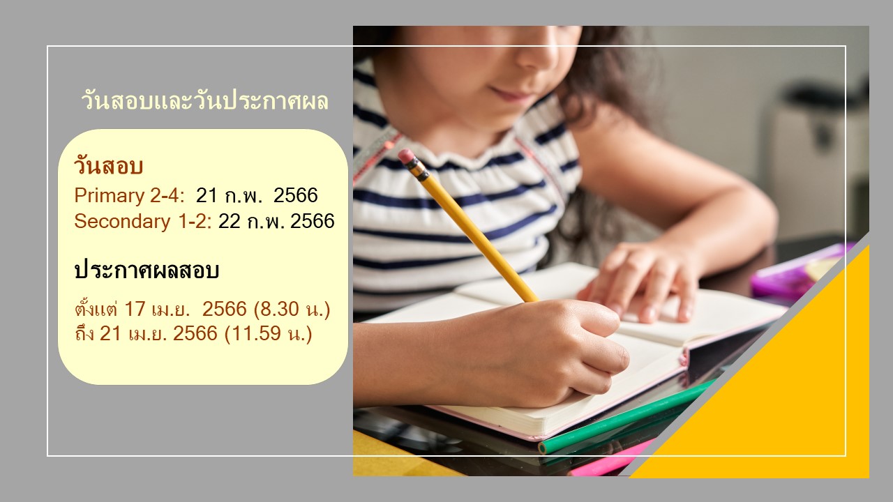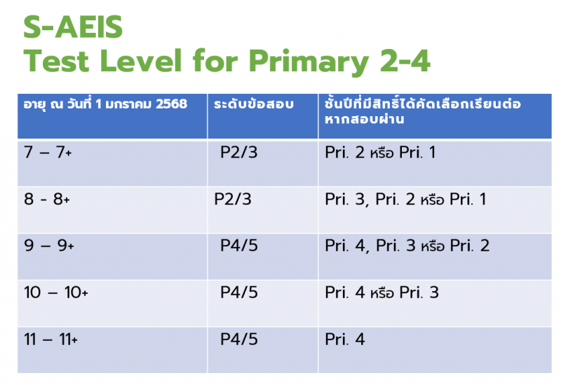 - ระดับ Primary 2 – 4 เปิดรับสมัครวันที่ 8- 14 ม.ค. 2568