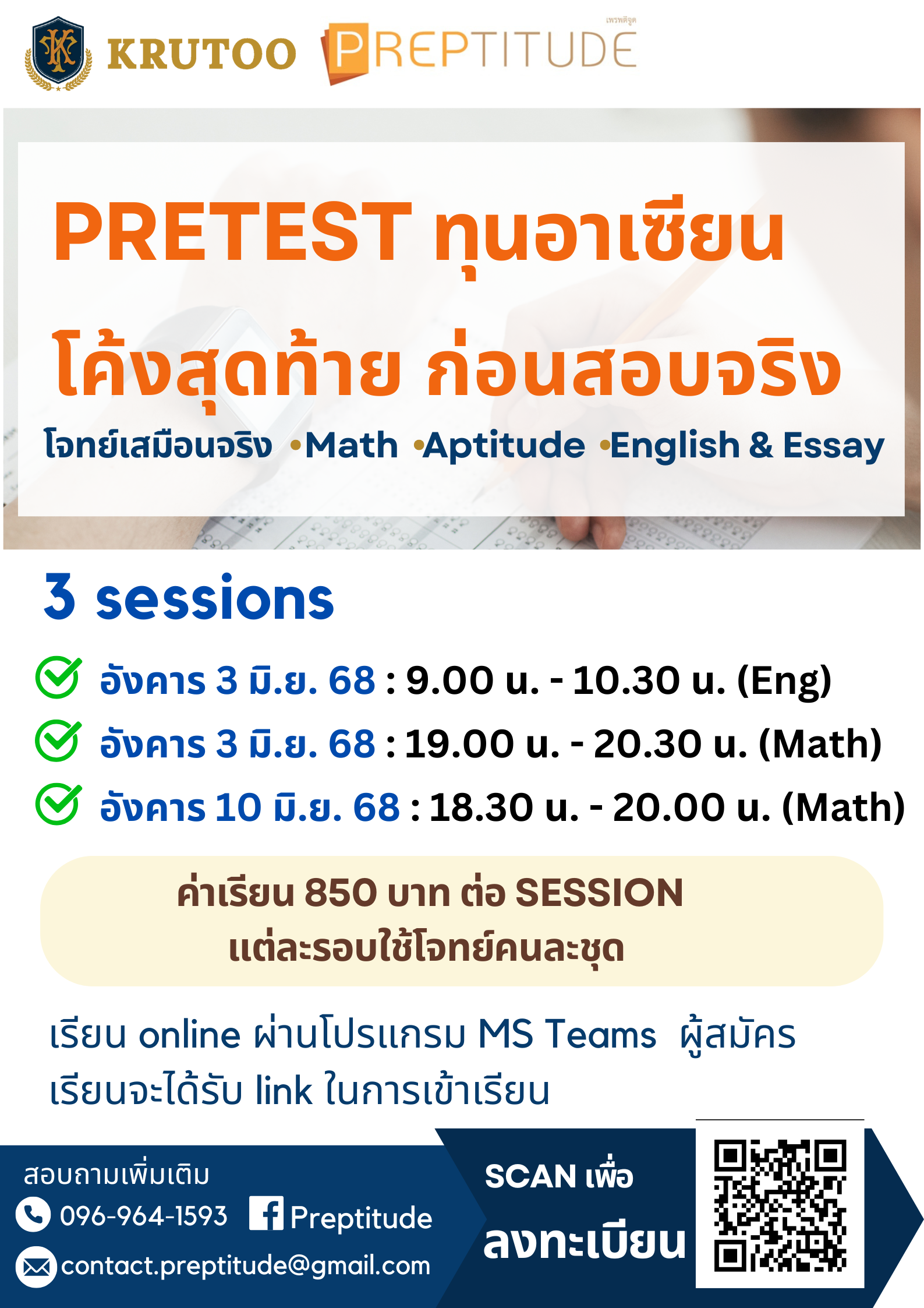 สอบถามข้อมูลเพิ่มเติมได้ที่ 096-964-1593 หรือ contact.preptitude@gmail.com , inbox มาที่ Facebook Page: Preptitude