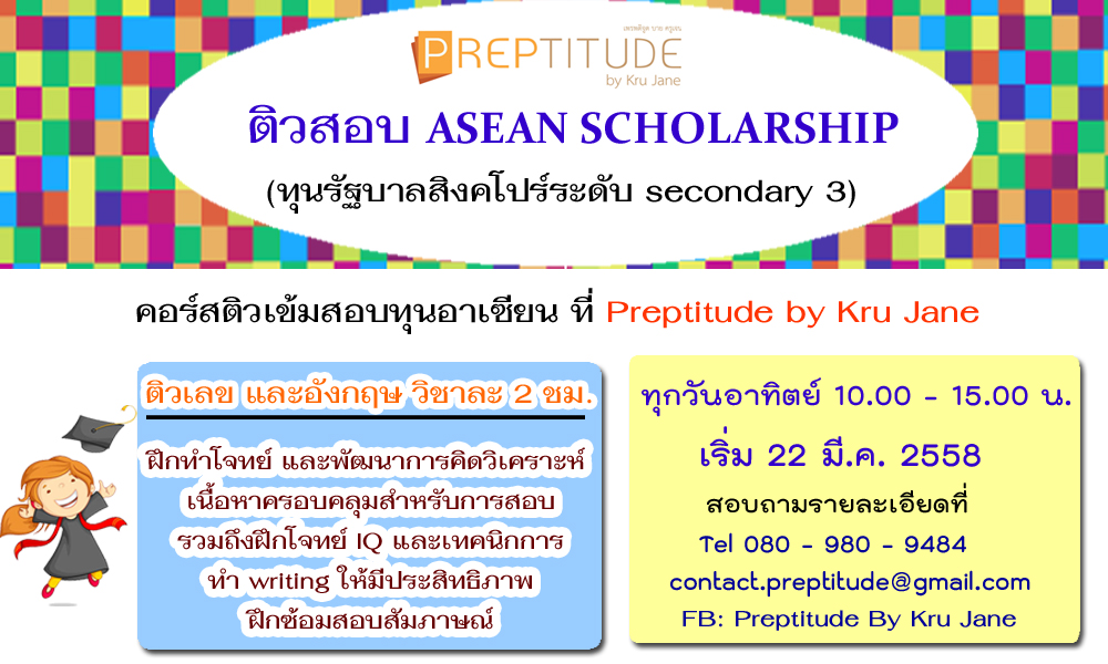 มาลงให้แล้วค่ะ รายละเอียดคอร์สติวสอบชิงทุนอาเซียนของรัฐบาลสิงคโปร์ที่ Preptitude